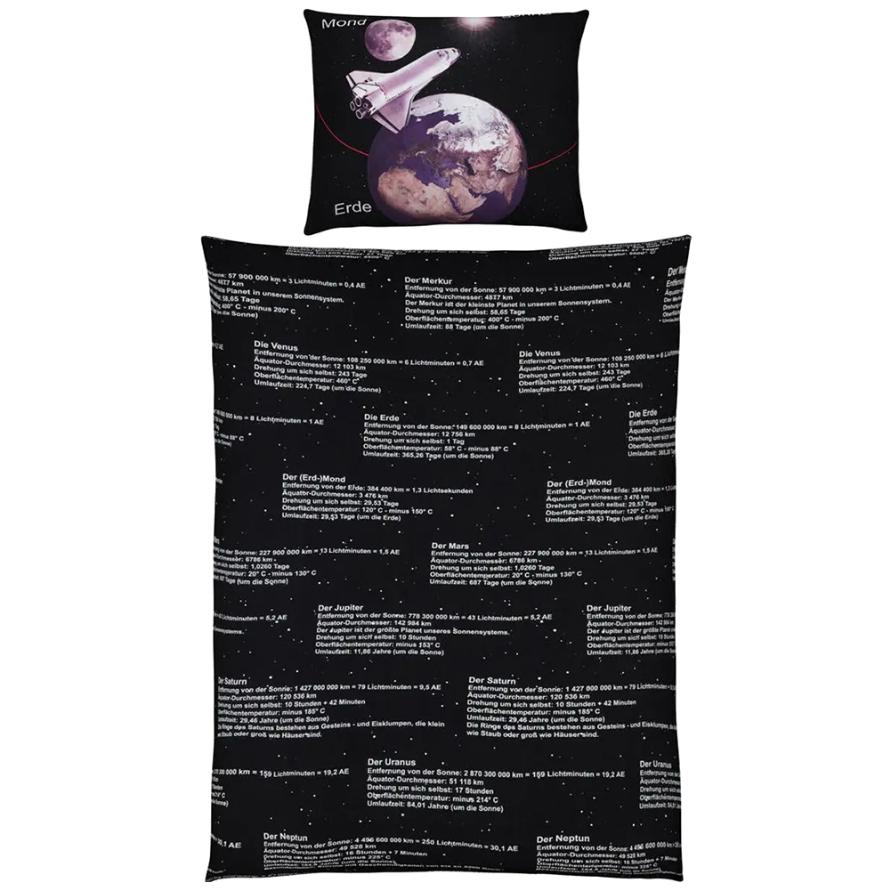 - faszinierende Weltraum-Motivbettwäsche mit realistisch dargestelltem Sonnensystem